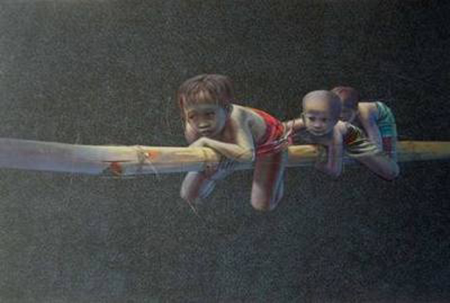 Sementara Zirwen Hazry pemenang utama Festival Seni Indonesia (FSI) Internasional II 2008 Yogyakarta melalui karya ”Menjaga Keseimbangan”/Akrilik-ballpoint/145x290cm/2007 merekonstruksi perumpamaan melalui sosok bocah mengenakan celana pendek dan kaki telanjang dipenuhi luka menganga dalam ayun langkah tangan dan kaki menjaga keseimbangan meniti tanggul satu demi satu diatas permukaan air mencapai tujuan keseberang harapan. Artinya dalam menentukan pilihan kedepan sebagian anak-anak berada pada posisi sulit menggapai masa depan, karena persoalan ekonomi dan pendidikan membuat mereka sulit menentukan pilihan.