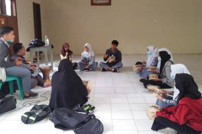 | siswa-siwi menampilkan bakat denganbermain musik | ||